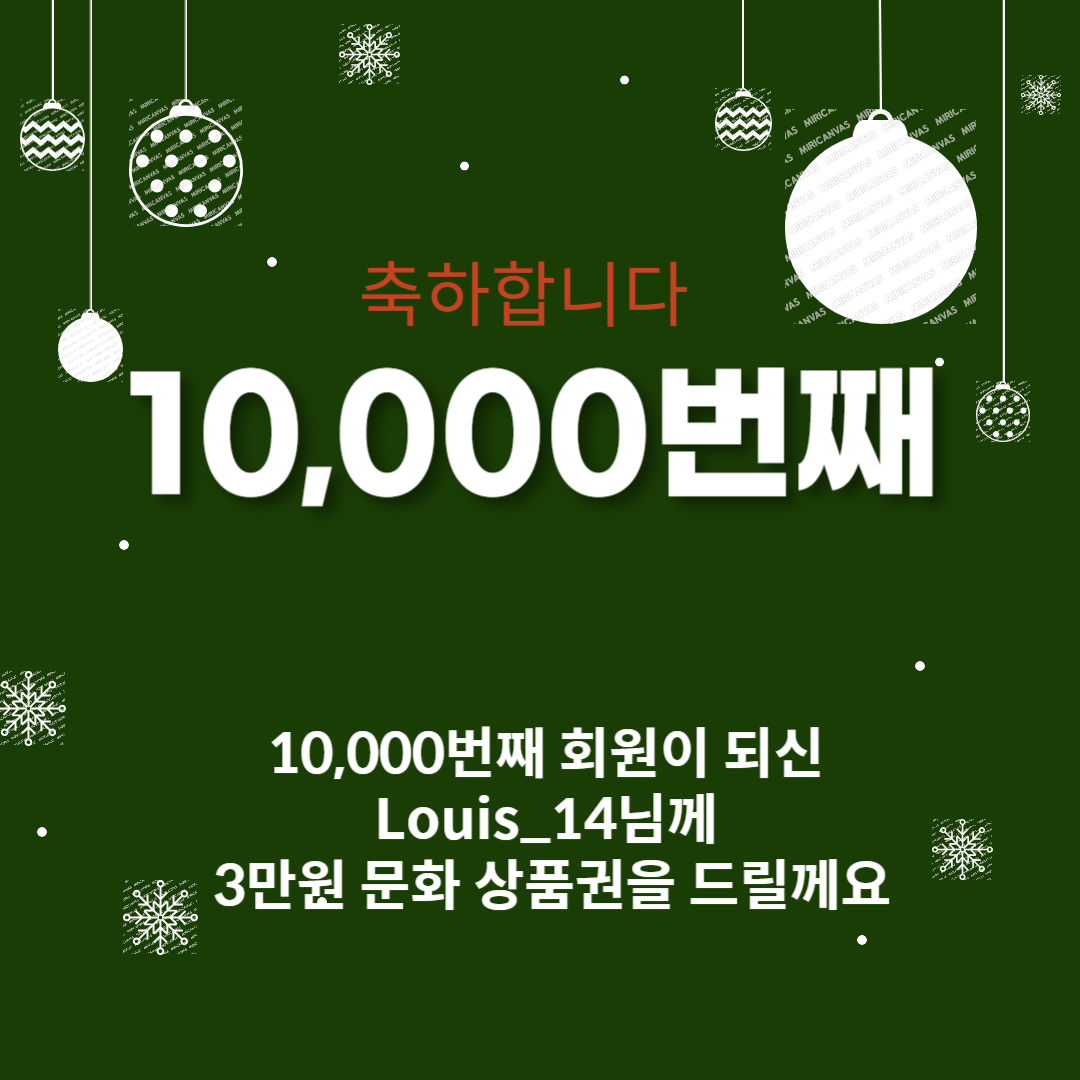 10,000번째 회원이 되신 Louis_14님께는 3만원권 문화상품권을 드립니다.