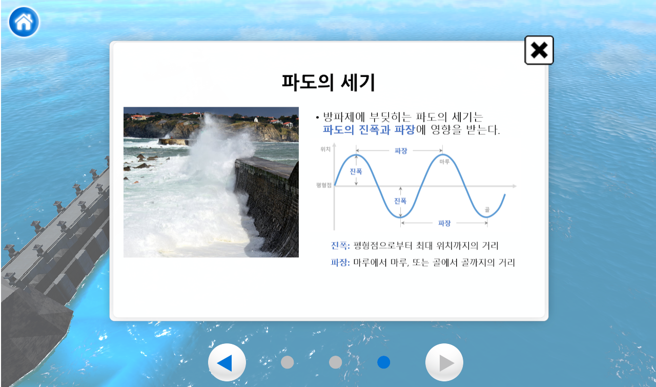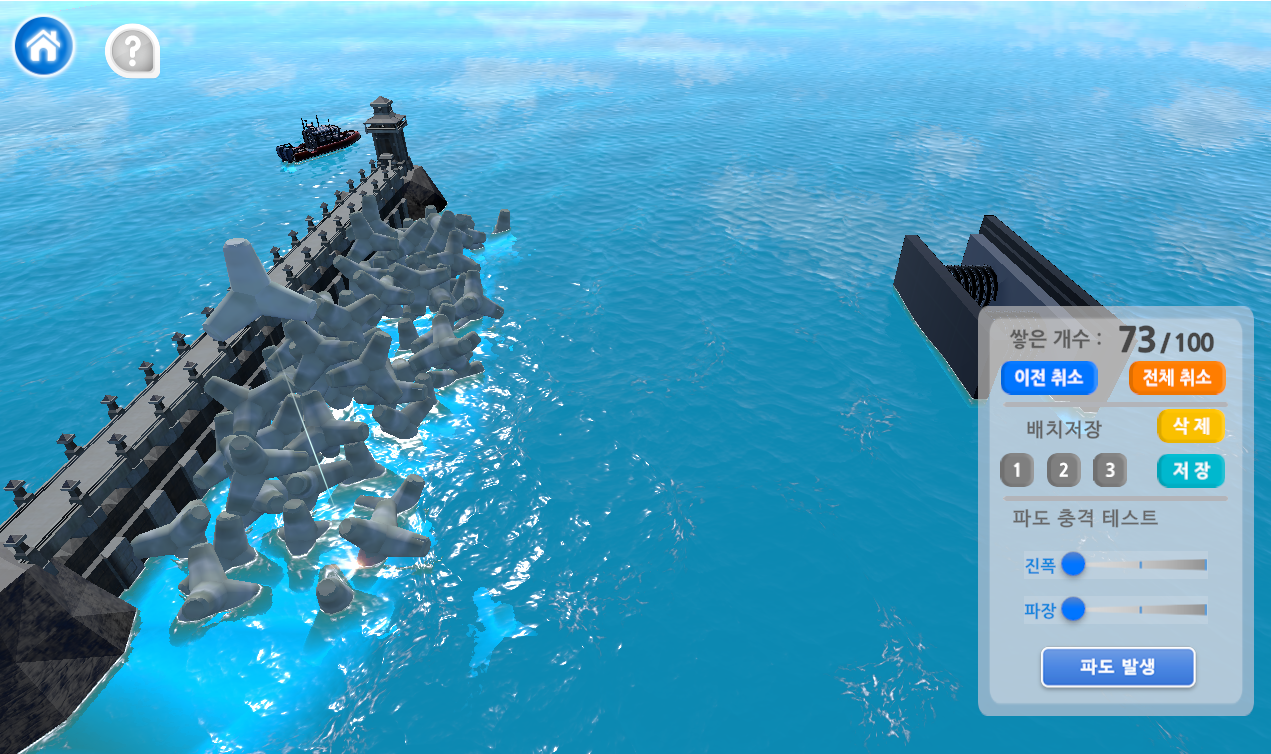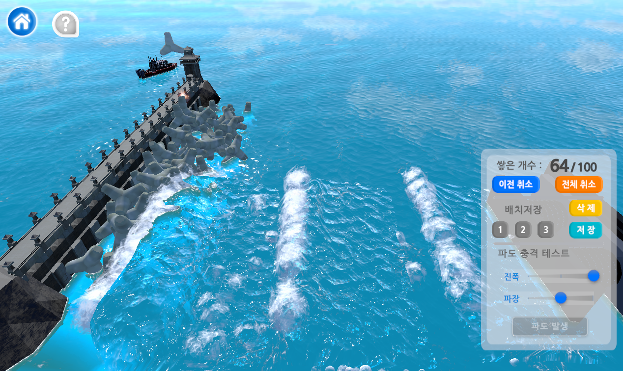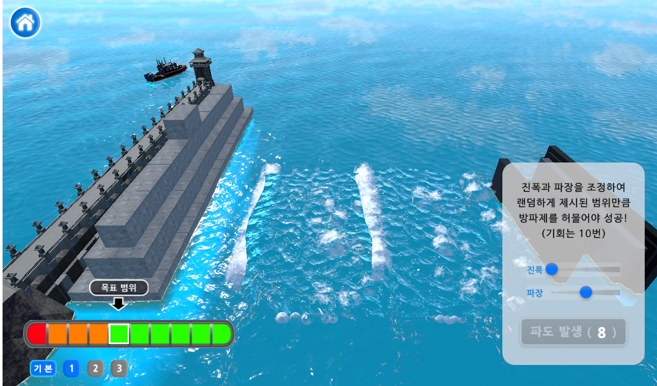 파도로부터 항구를 보호하는 방파제의 구조 이해하고, 파도의 세기(진폭, 파장)를 조절하며 자연스럽게 파동의 성질을 학습하는 실험