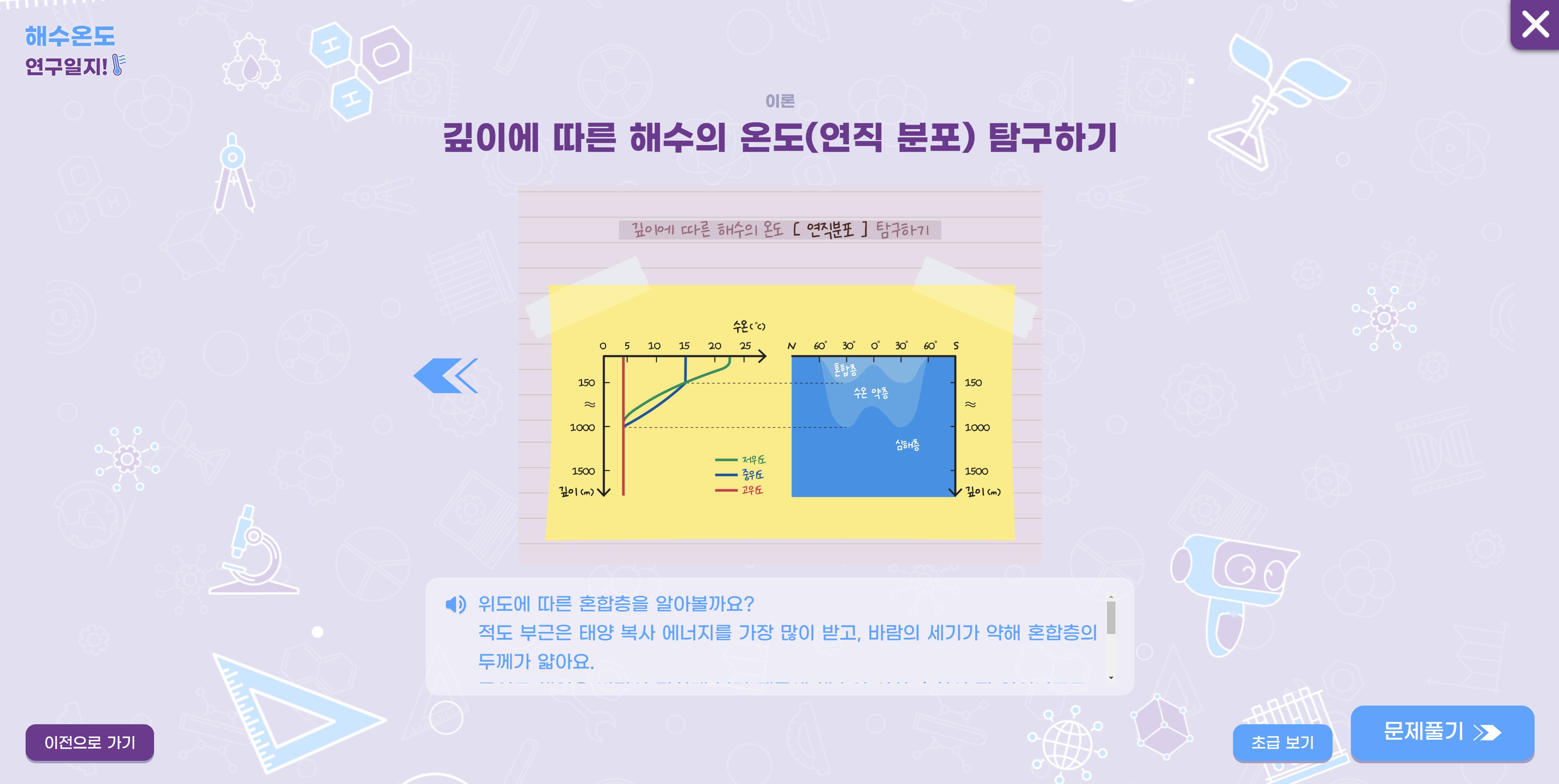 두 가지 학습방이 있는건가요? 수평, 수직 해수온도에 대한 개념을 익히기에 좋은 것 같습니다.
