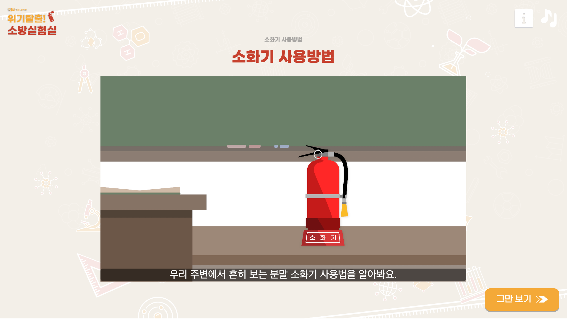 ⭘ 분말 소화기와 소화전 사용법 영상 학습