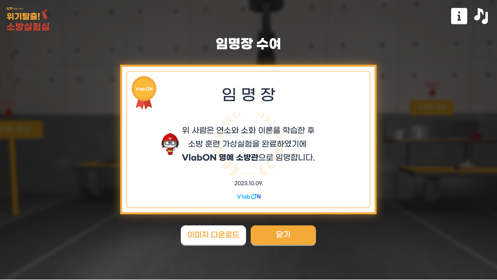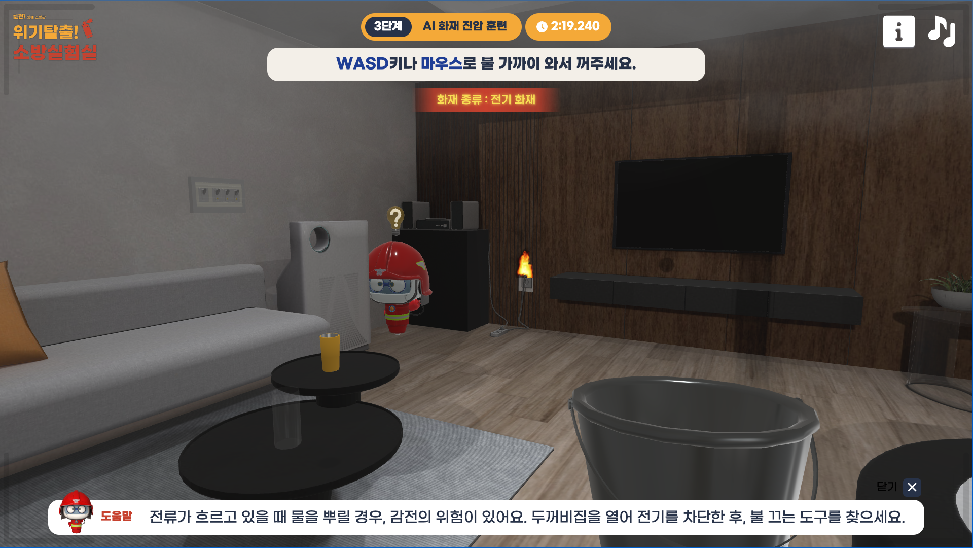 AI 소방관과 함께 모의 화재 현장에 투입되어 네 종류의 화재를 진압합니다.