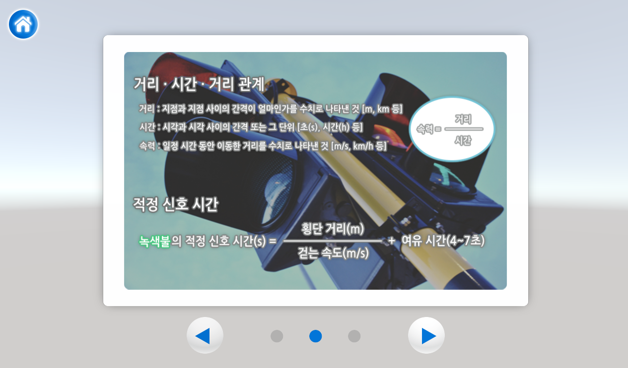 교통신호체계의 기본 개념을 이해하고, 차량 신호와 보행자 신호 체계의 주요 요인(차량수‧신호 방향‧지속 시간)들을 직접 조절하며 교통순환체계 안에서의 각각의 수학적 원리를 학습하는 실험